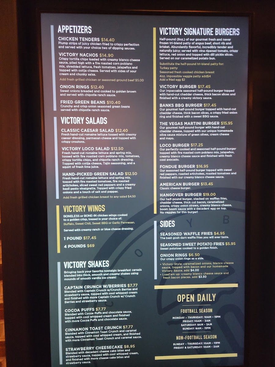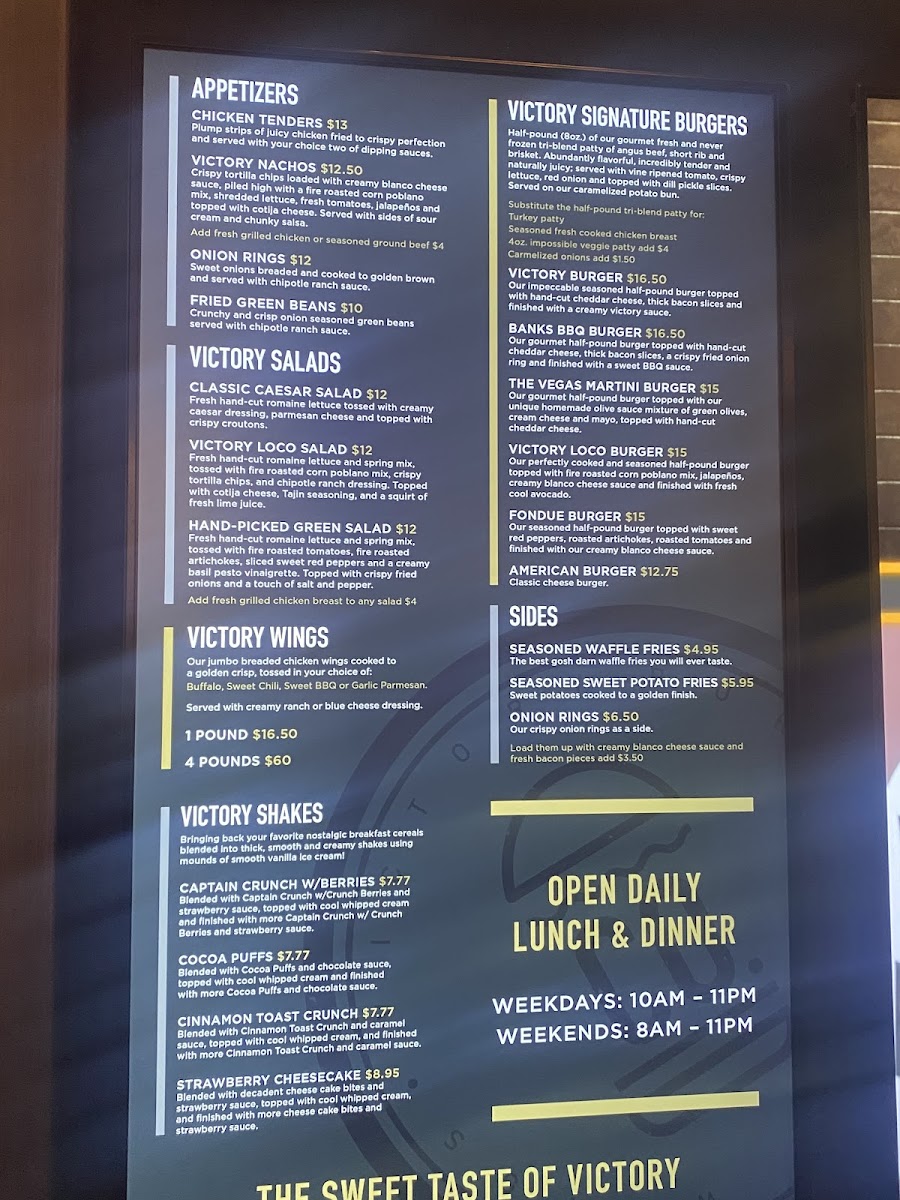Located in the vibrant heart of Las Vegas at 8 Fremont St, Victory Burger & Wings Co. is a casual dining spot where sports fans and food lovers unite. Nestled within the lively Circa Casino, this restaurant has managed to carve a niche for itself with its hearty offerings and slightly eclectic vibe. If you’re looking for a culinary experience that brings together the thrill of downtown Vegas with the taste of comfort food, then you’re in for a treat.